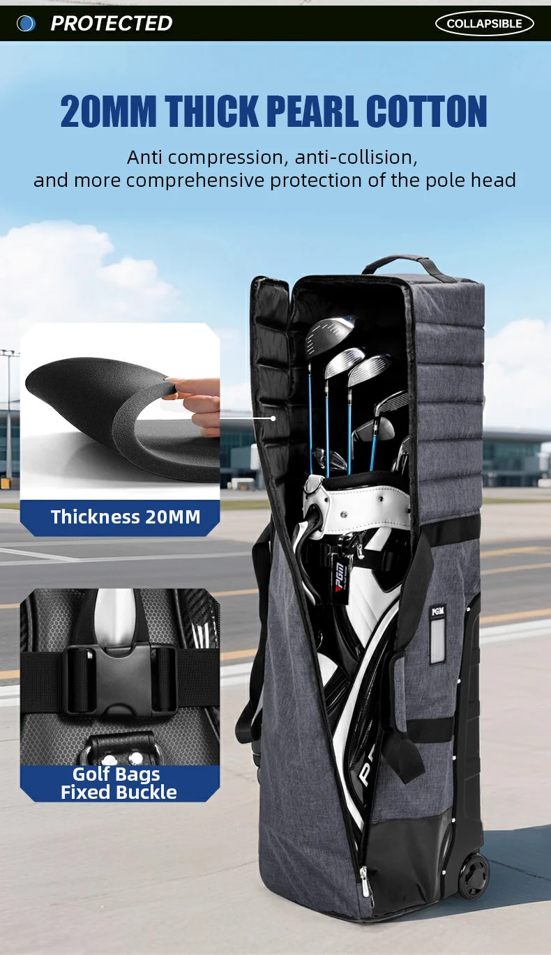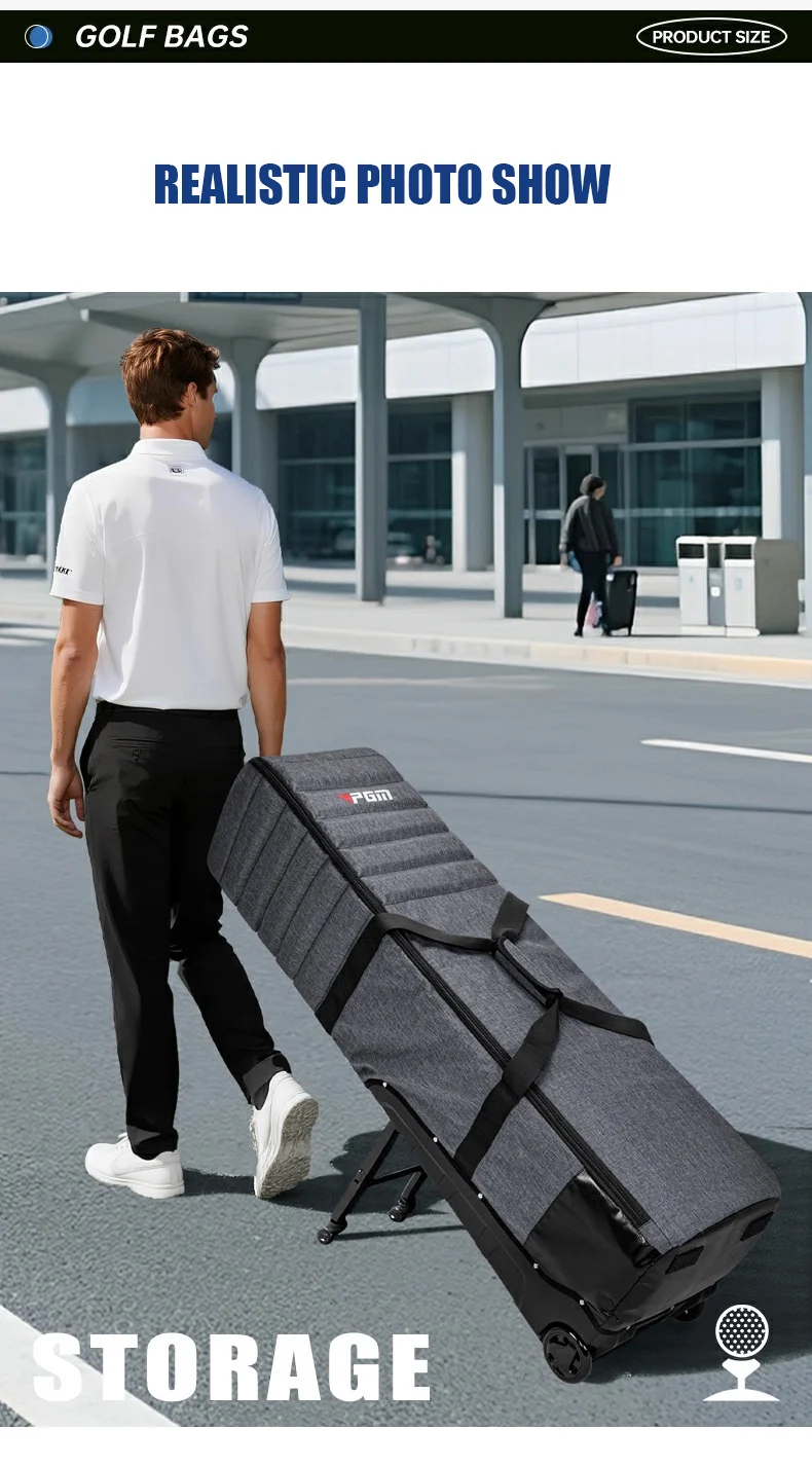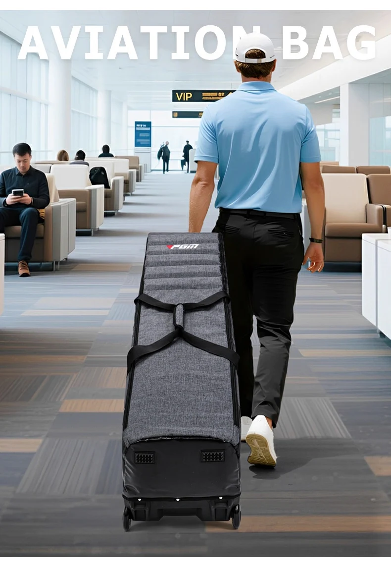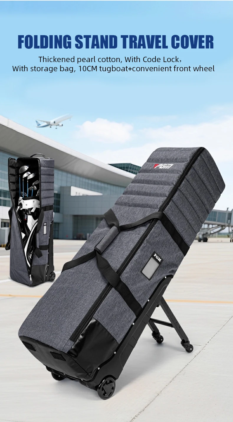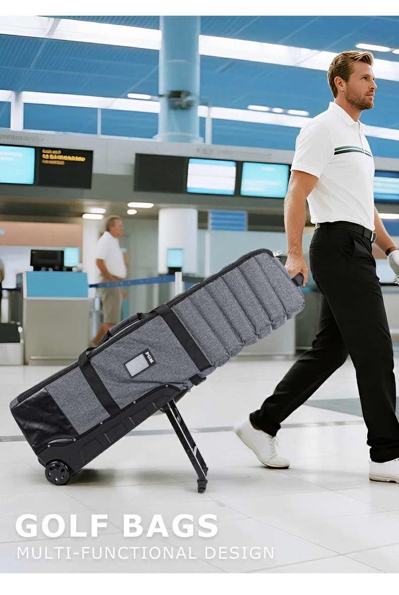 PGM HKB017 Portable Heavy-Duty Impact-Resistant Foldable Stand Golf Travel Bag with Wheels