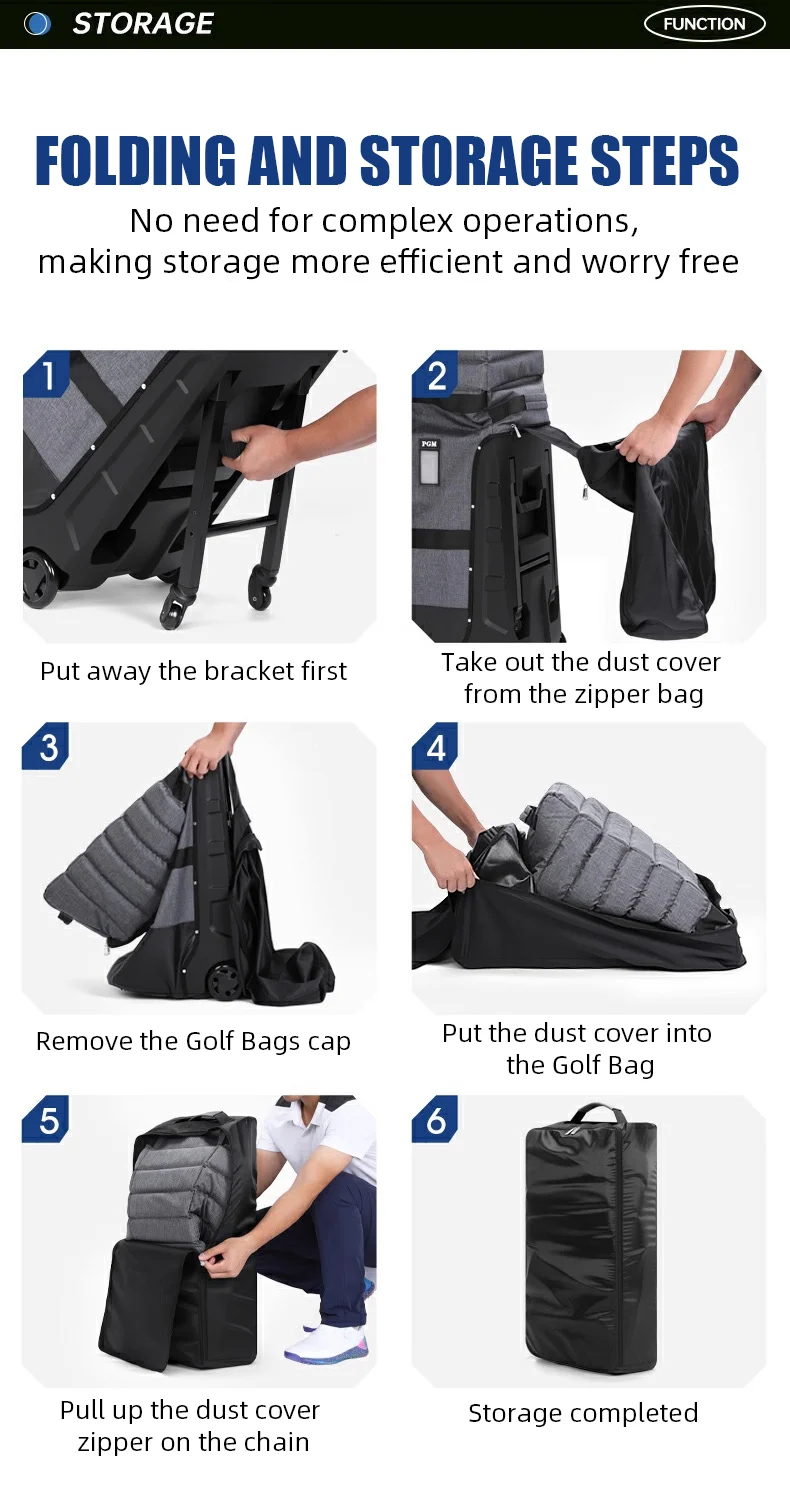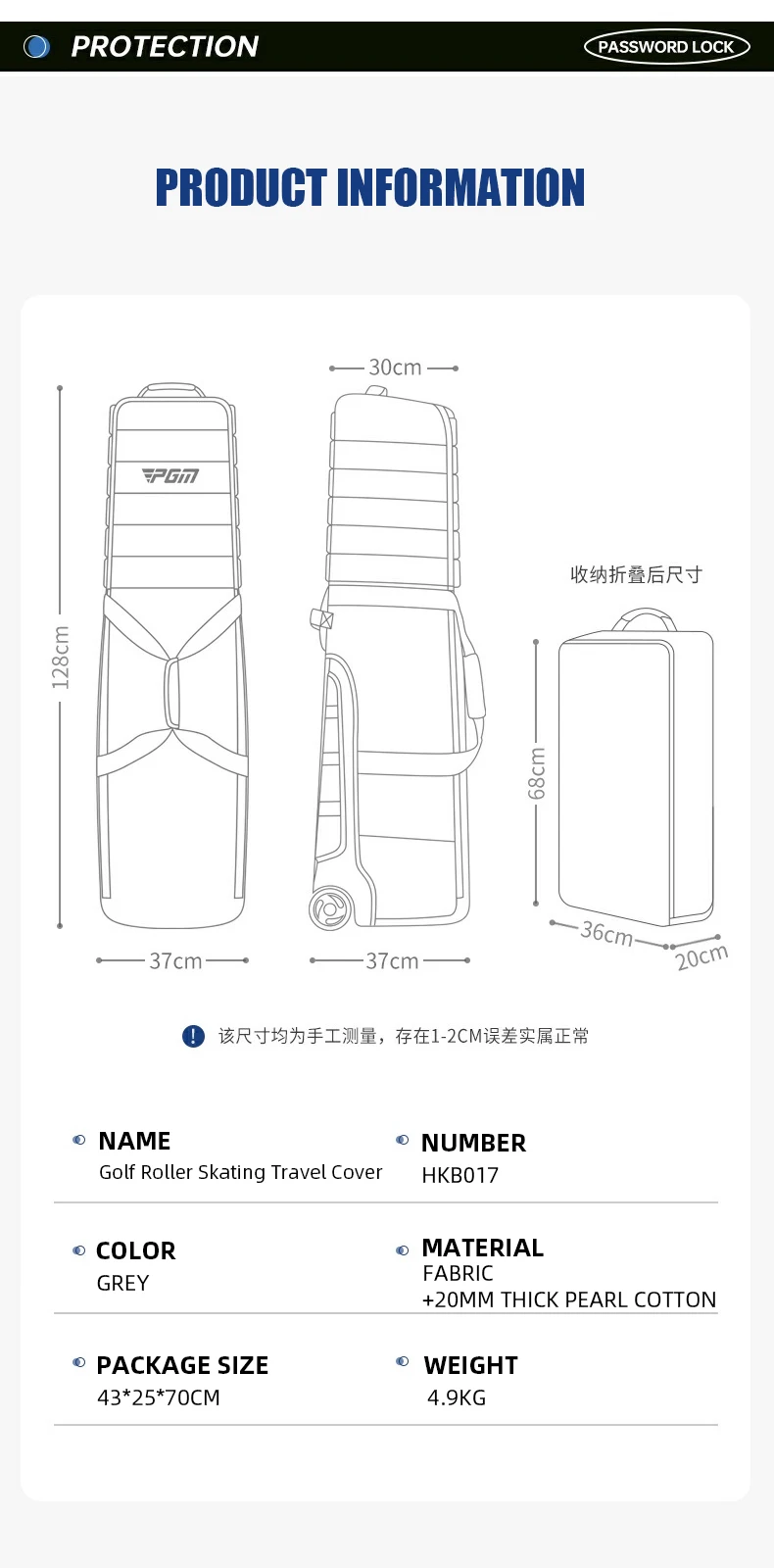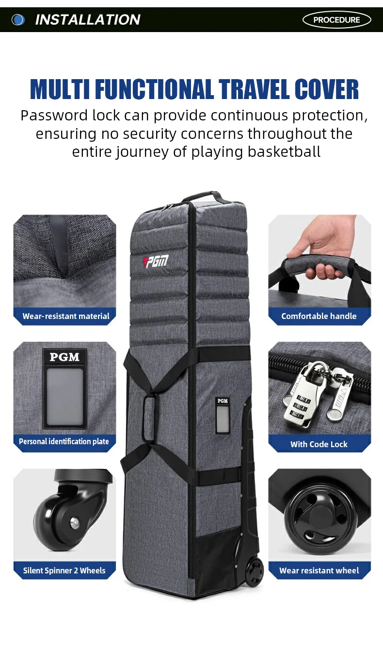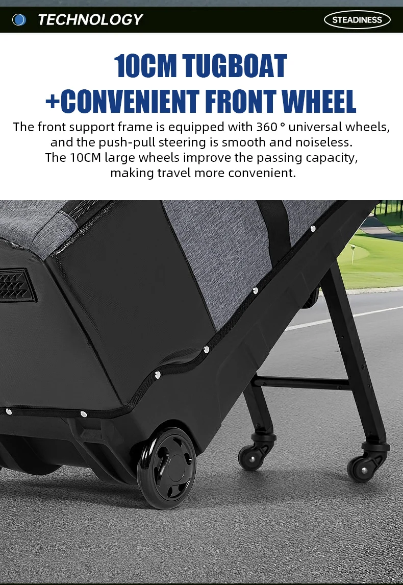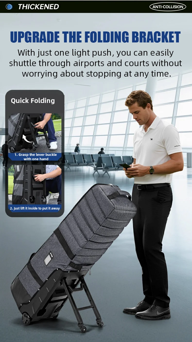 PGM HKB017 Portable Heavy-Duty Impact-Resistant Foldable Stand Golf Travel Bag with Wheels