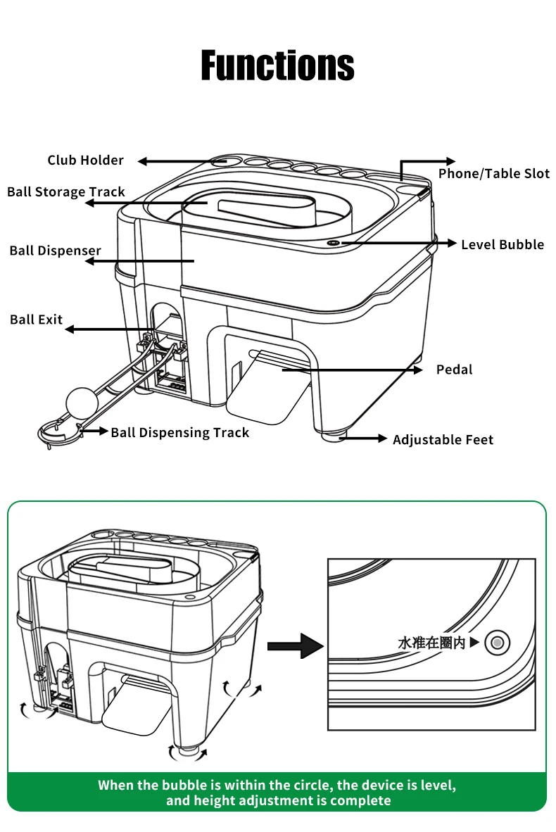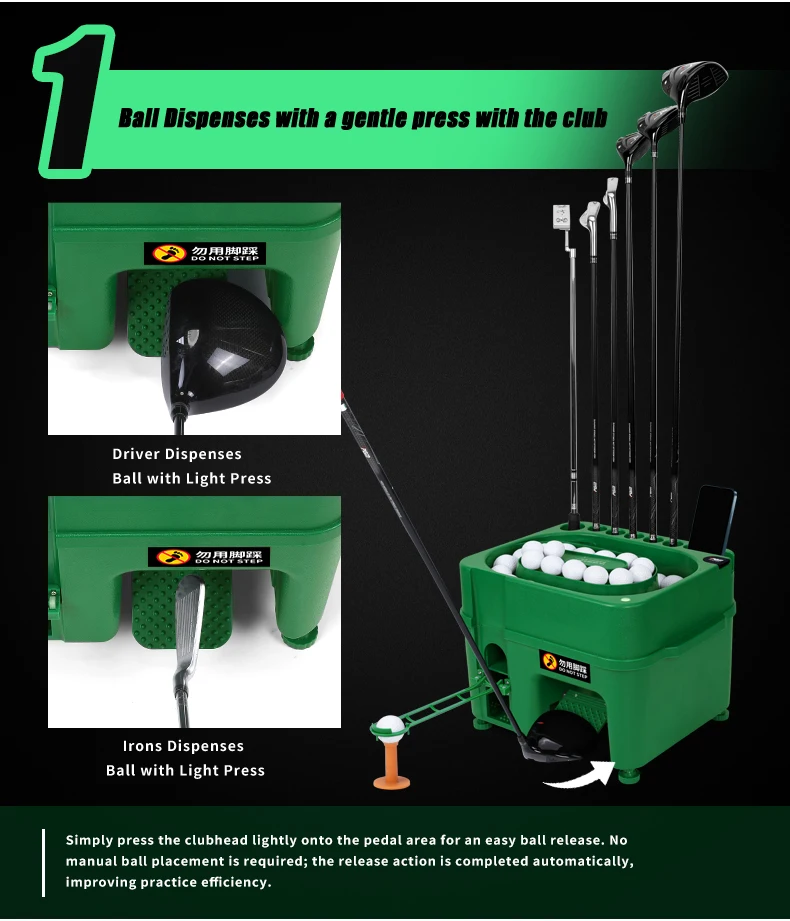 PGM JQ021 Golf Ball Dispenser with Club Rack and Multi-functional Ball Box Semi-automatic Golf Ball Dispenser